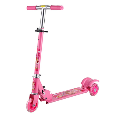 Let your little one scoot around in style with this pink 3-wheel kick scooter featuring princess-themed graphics. Built with a foldable frame, adjustable handlebar, and LED flashing rear wheels, it's the perfect fun and safe ride for young girls.