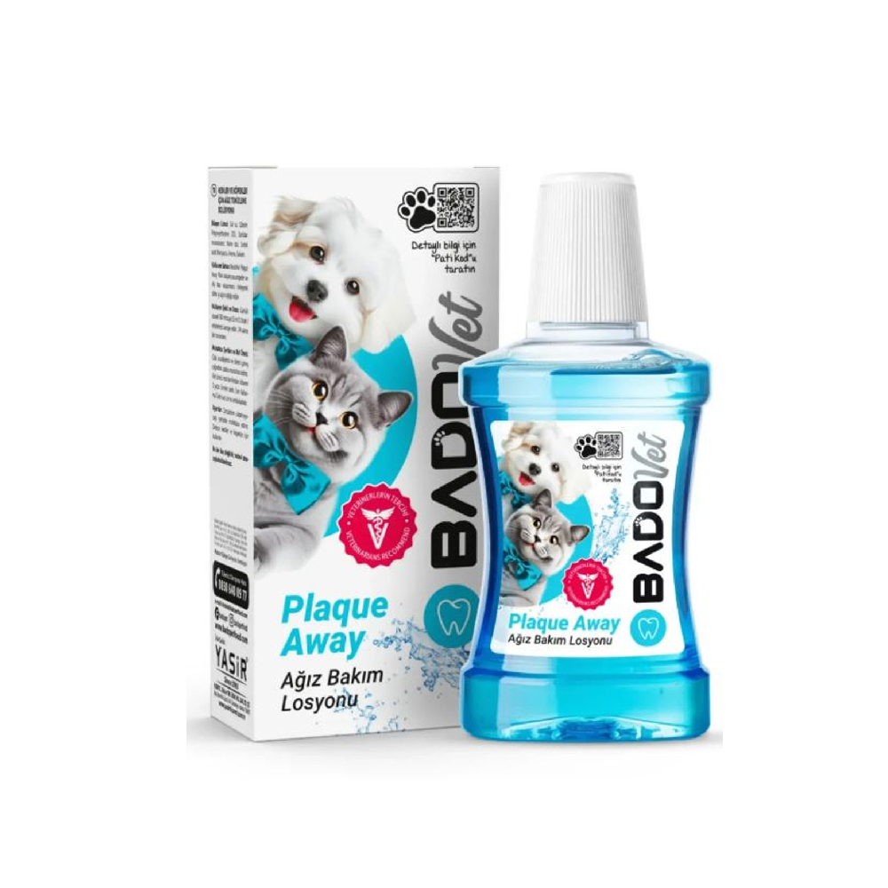 Bado Cat and Dog Tooth Plaque Away (250 Ml) is a dental care solution designed to reduce plaque and tartar buildup in cats and dogs. Formulated with safe and effective ingredients, it helps maintain fresh breath, healthy gums, and strong teeth. Easy to use by adding directly to your pet’s drinking water, making daily oral hygiene simple and stress-free.