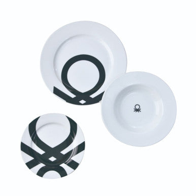 طقم أدوات مائدة من البورسلين مكون من 18 قطعة من بينيتون هوم باللونين الأبيض والأسود | BE-0244