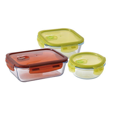 مجموعة بينيتون هوم 3 عبوات طعام (غطاء أخضر مستدير 400 مل + غطاء أخضر مربع 800 مل + غطاء بني مستطيل 1000 مل | BE-0891