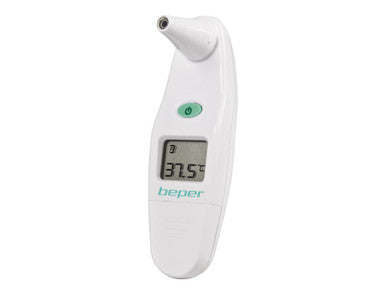 Digital thermometer for earphone use with infrared technology. Equipped with an acoustic signal once it is ready for use and for temperatures> 37.8°C. Possibility to choose between °C and ºF. Temperature range from 32.0°C to 43.0°C. With liquid crystal display, 10 data memories and case. The package includes 15 hygienic plastic sensor cover heads and 1 battery.