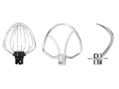 Mixer with ABS structure and removable stainless steel bowl with a 4.5L capacity. Thanks to the powerful 1000 watt motor and the 8 speed selectable pulse button it is ideal for kneading, mixing and whipping. Transparent plastic splash guard on the bowl. Flush whisk, flat whisk and easily interchangeable dough hook supplied. Base with non-slip suction cups for secure fixing.