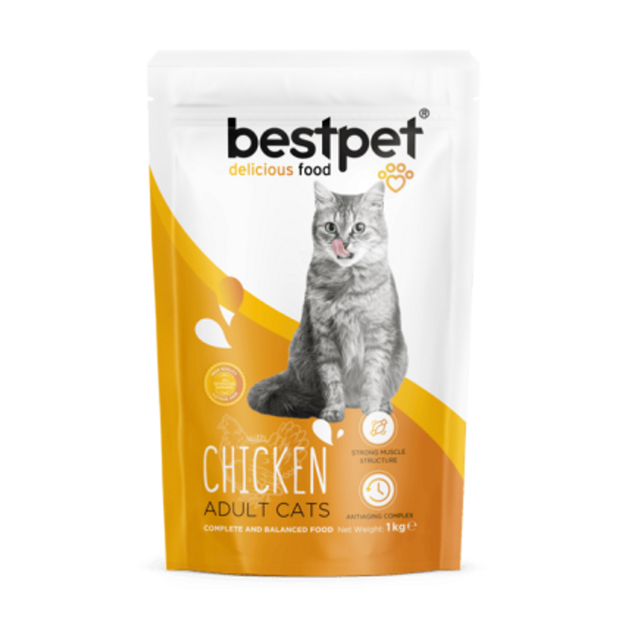 Best Pet Chicken + Rice Dry Food 1 Kg is a complete and balanced meal for adult cats, made with high-quality chicken protein and easily digestible rice. This formula supports healthy muscle maintenance, strong bones, and overall vitality. Enriched with essential vitamins, minerals, and Omega fatty acids, it promotes healthy skin, a shiny coat, and optimal digestion. Ideal for adult cats of all breeds, this 1Kg pack is perfect for small cats or as a trial size.