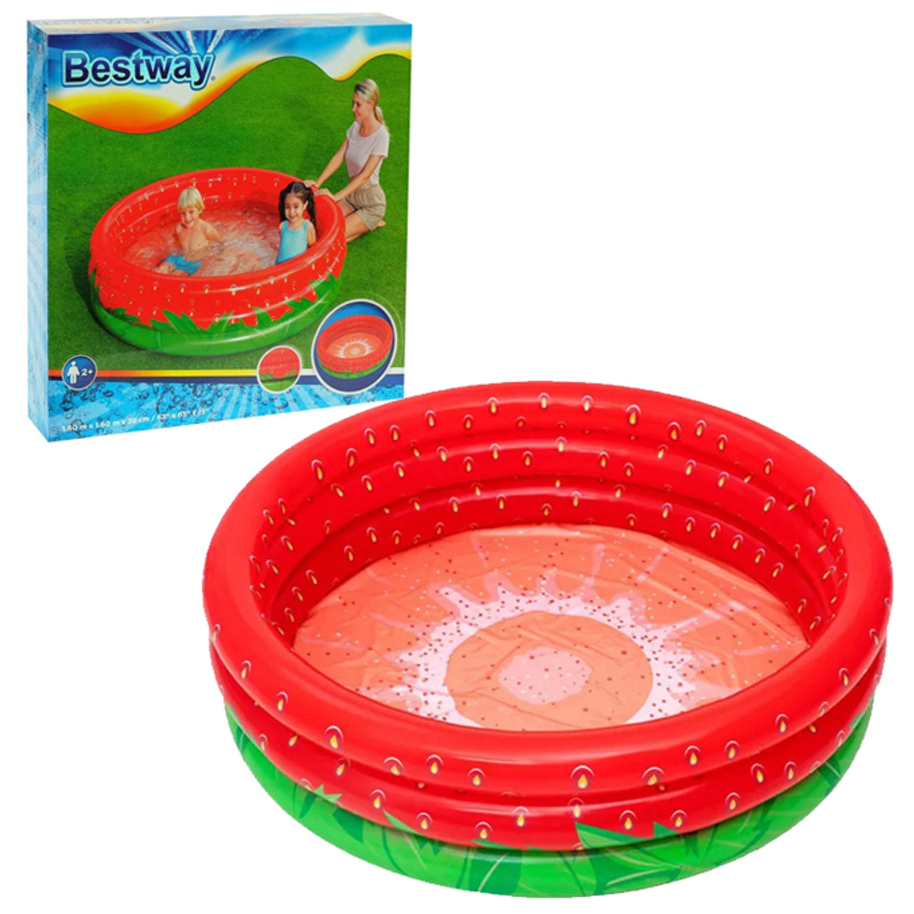 Bring sweetness to summer with the Bestway P-51145 Inflatable Kiddie Pool, designed with a vibrant strawberry theme for endless outdoor fun.
