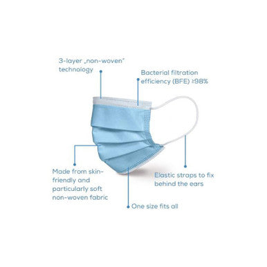 - صُنع في الاتحاد الأوروبي: قناع الوجه ثلاثي الطبقات من النوع IIR هو جهاز طبي معتمد وعالي الجودة ويحمي بيئتك من القطرات والكائنات الحية الدقيقة المختلفة في الهواء