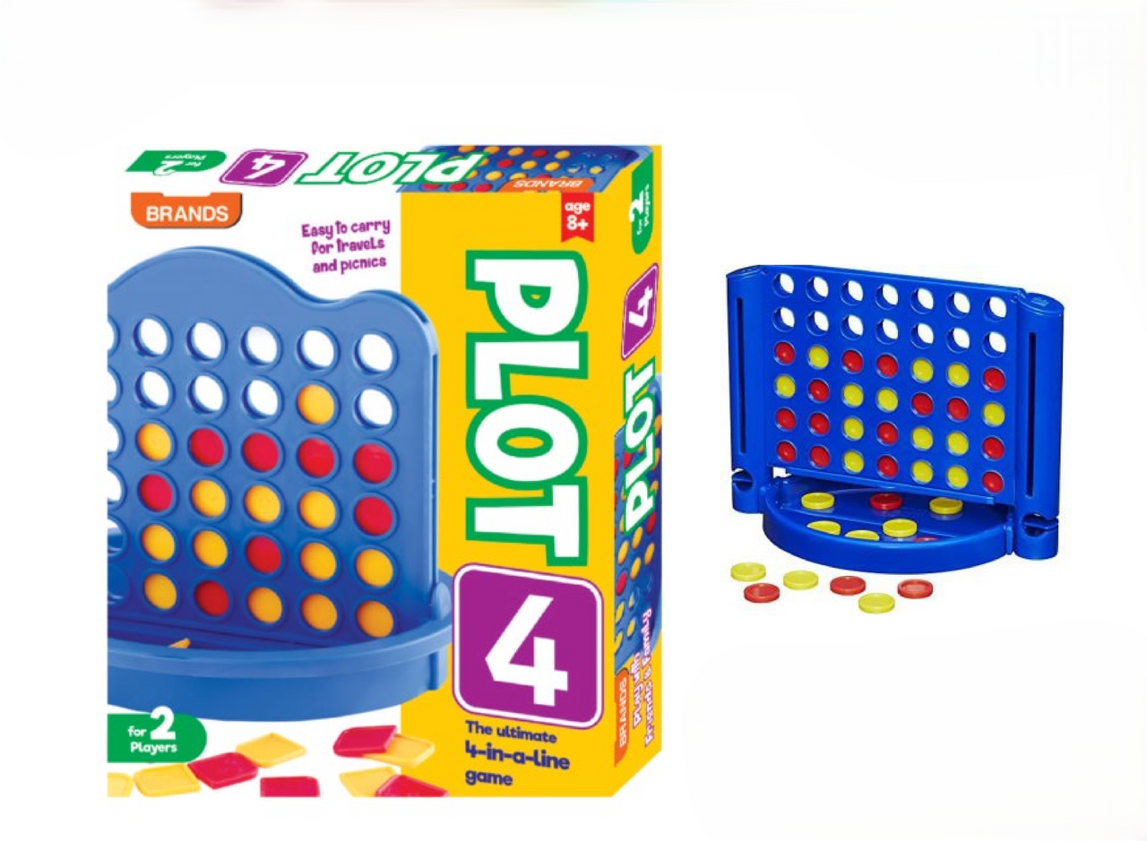 The Brands Plot Four | 59 is a classic strategy game designed to enhance logical thinking and concentration in children and adults alike. Players take turns dropping colored discs into the grid, aiming to connect four in a row horizontally, vertically, or diagonally. It’s a simple yet highly engaging game that promotes competitive fun and family bonding.