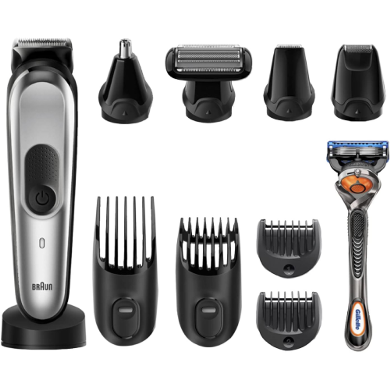 The Braun 10 In 1 Beard Trimmer, With Hair & Nose Trimmer, Black/Silver | MGK7920TS is a versatile multi-grooming kit designed for full-body styling, precise beard trimming, and easy hair maintenance. It offers powerful performance, multiple attachments, and exceptional control for everyday grooming.