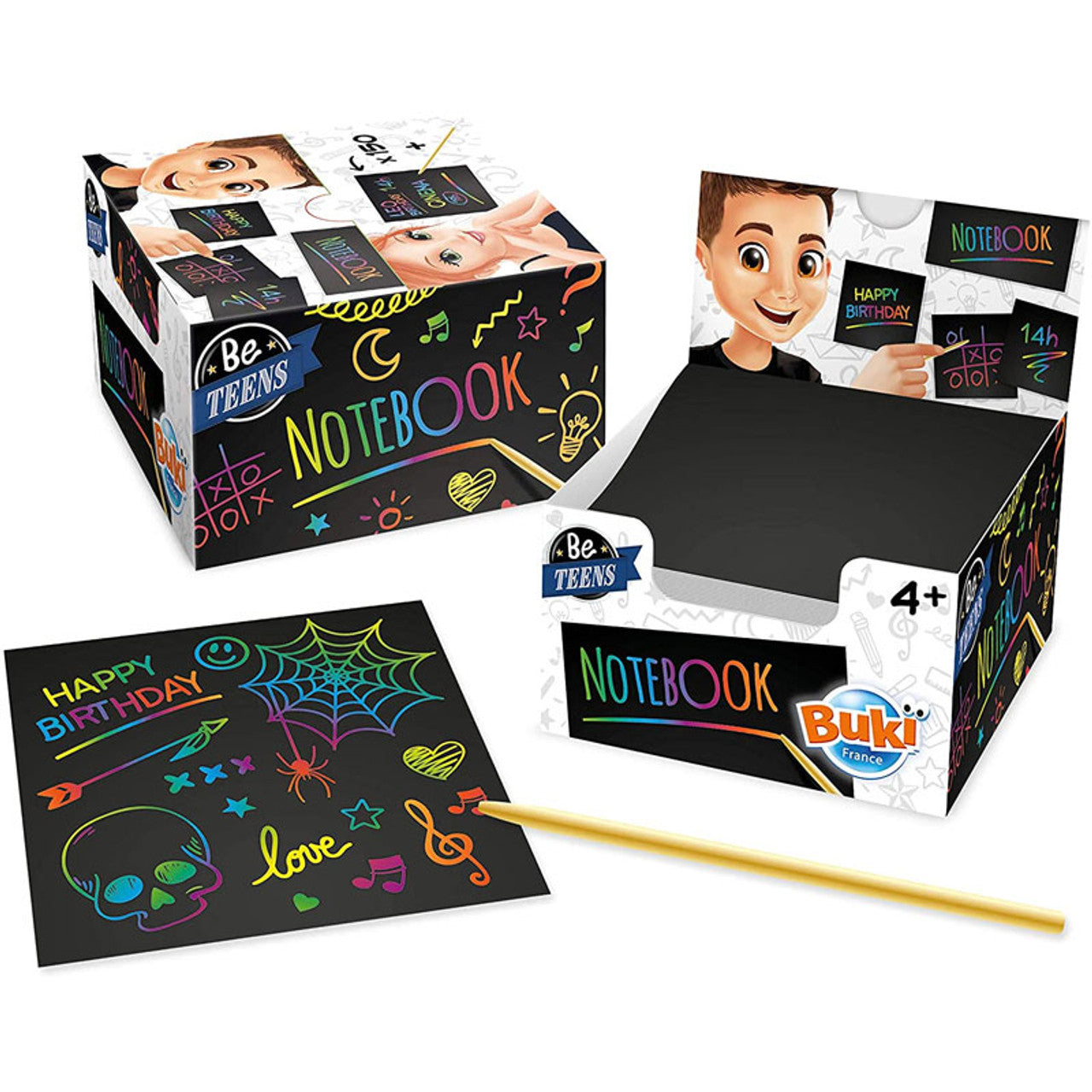 BK Be Teen Scratch Notebook | BKNB001 is a creative notebook designed for teens, featuring scratch art pages. Users can scratch away the black coating to reveal colourful designs underneath, creating unique artwork and patterns. This notebook encourages creativity and artistic expression.