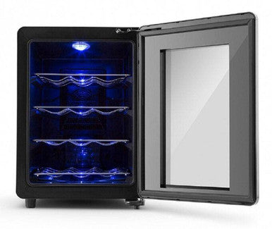 The Campomatic WC12SZ is a countertop wine cooler designed to store up to 12 bottles of wine at optimal temperatures. Its sleek design, featuring a black exterior with a glass front and stainless steel frame, makes it an elegant addition to any kitchen or dining area. The thermoelectric cooling system ensures quiet operation and minimal vibration, preserving the quality of your wine.