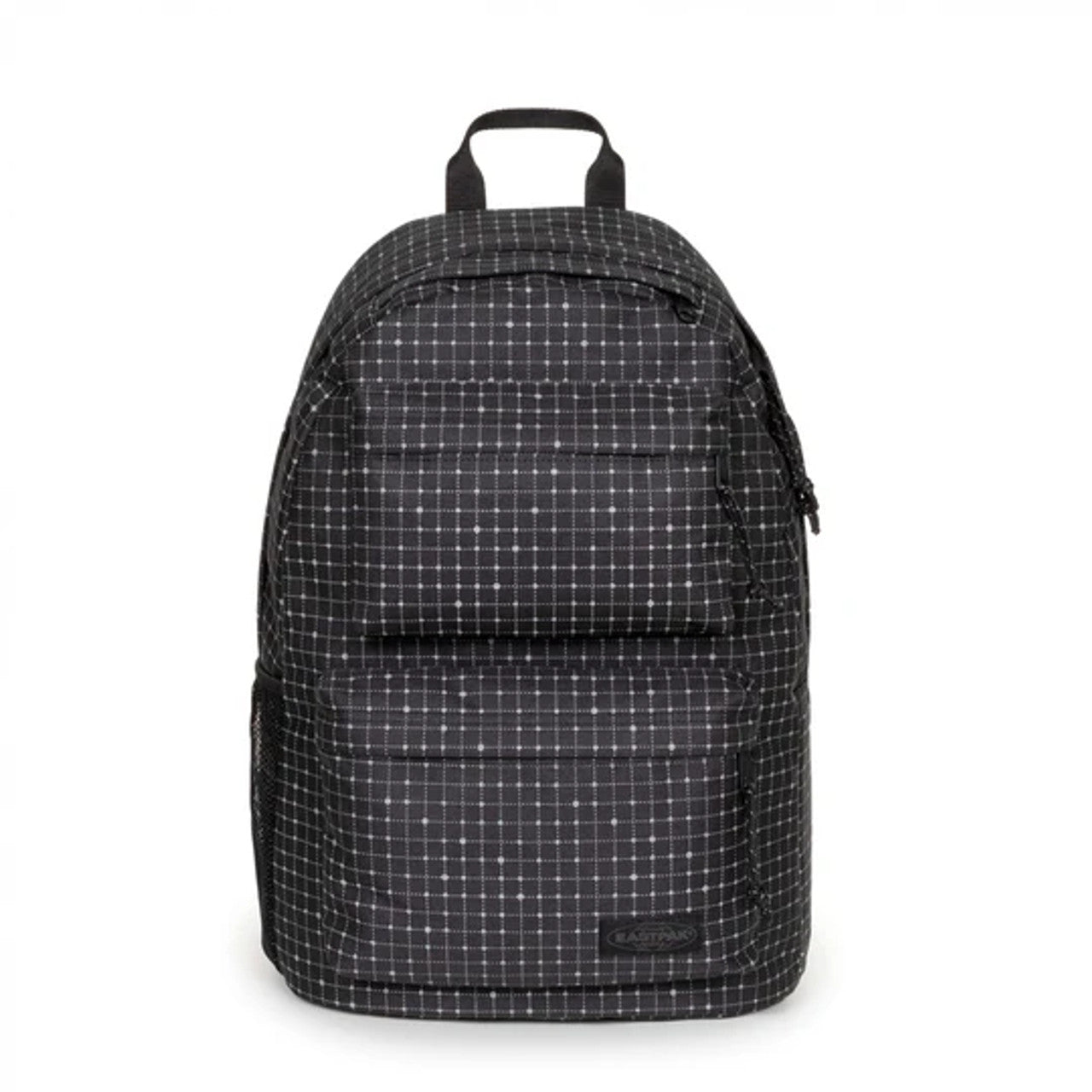 The Eastpak DOUBLE OFFICE in Refleks Space Black is a versatile and stylish backpack designed for professionals and students alike. Featuring a rectangular shape, this backpack offers ample storage with two main compartments and multiple zippered pockets. The padded laptop sleeve accommodates most 15-inch devices, while the side bottle holder ensures hydration on the go.