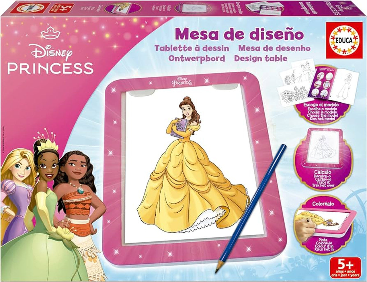 The Educa 20006 Disney Princess Design Table is a magical drawing set that lets kids sketch, trace, and color their favorite Disney Princesses.