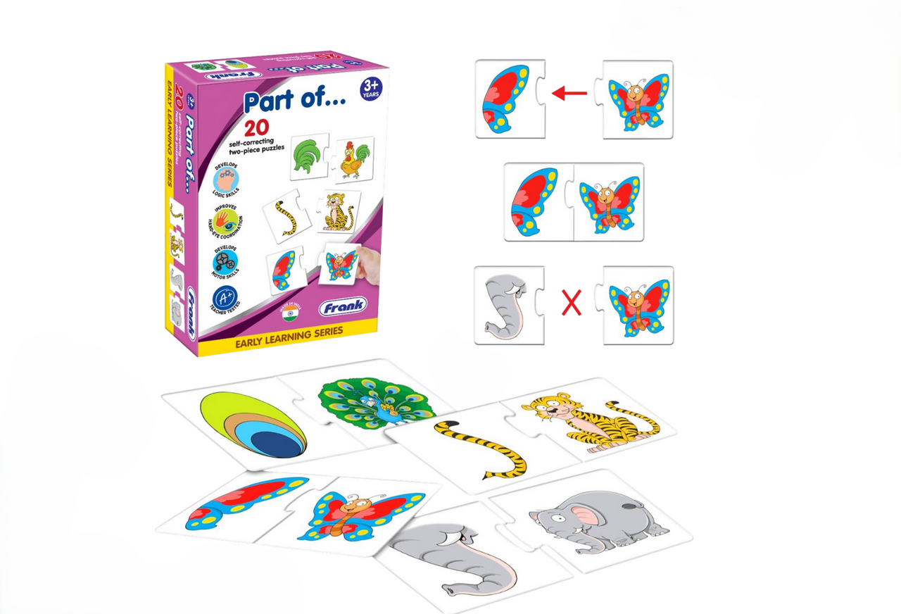 The Frank Part Of... | 10130 is an educational matching puzzle designed to help children understand relationships between objects and their parts. Through colorful illustrations and self-correcting puzzle pieces, kids learn to identify how things fit together, enhancing observation, logic, and vocabulary skills in a fun and interactive way.
