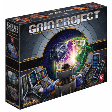 Gaia Project is a new game in the line of Terra Mystica. As in the original Terra Mystica, fourteen different factions live on seven different kinds of planets, and each faction is bound to their own home planets, so to develop and grow, they must terraform neighboring planets into their home environments in competition with the other groups. In addition, Gaia planets can be used by all factions for colonization, and Transdimensional planets can be changed into Gaia planets. All factions can improve their skills in six different areas of development — Terraforming, Navigation, Artificial Intelligence, Gaiaforming, Economy, Research — leading to advanced technology and special bonuses. To do all of that, each group has special skills and abilities.