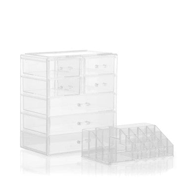 With the new InnovaGoods Home Organize acrylic makeup organiser, you won't waste time rummaging through the drawer to find your lipstick or eye shadow! This convenient and practical cosmetics organiser is ideal for keeping your beauty products well organized and has everything you need to apply makeup: brushes, eye-shadows, eye liners, mascara, lipstick, blushes, powders, nail polish, etc.