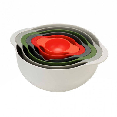• تتضمن المجموعة: وعاء سعة 5 لتر بقاعدة غير قابلة للانزلاق، مصفاة سعة 3 لتر، وعاء سعة 1.8 لتر، وعاء سعة 1 لتر مع فوهة ووعاء سعة 0.4 لتر