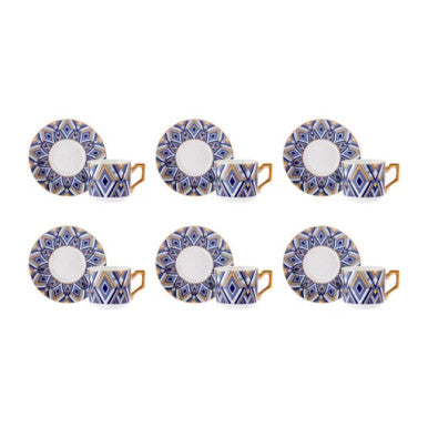 The Karaca Bergama Coffee Cup Set is an elegant collection designed for serving Turkish coffee or espresso. This set includes six cups, each with a capacity of 100 milliliters, accompanied by matching saucers. Crafted from high-quality porcelain, the cups and saucers feature intricate patterns inspired by the historic city of Bergama, adding a touch of sophistication to your coffee experience. The ergonomic design ensures a comfortable grip, while the saucers provide a stable base. To maintain the vibrant designs and quality of the set, hand washing is recommended.