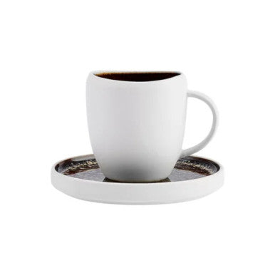 The Karaca Galactic Coffee Cup Set is designed for two people and includes two espresso-sized cups, each with a capacity of 100 milliliters, along with matching saucers. Crafted from high-quality ceramic, the set features a reactive glaze finish, giving each piece a unique and elegant appearance. The cups are ergonomically designed for a comfortable grip, and the saucers provide a stable base. This set is ideal for serving espresso or Turkish coffee, adding a touch of sophistication to your coffee experience. To maintain the pristine condition of the set, hand washing is recommended