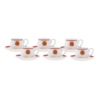 The Karaca Hatayi Coffee Cup Set is an elegant ensemble designed for serving Turkish coffee or espresso. This 12-piece set includes six cups, each with a capacity of 90 milliliters, accompanied by matching saucers. Crafted from high-quality porcelain, the set features intricate patterns inspired by traditional Hatayi motifs, adding a touch of cultural sophistication to your coffee experience. The cups are ergonomically designed for a comfortable grip, while the saucers provide a stable base. To maintain the pristine condition and longevity of the set, hand washing is recommended.