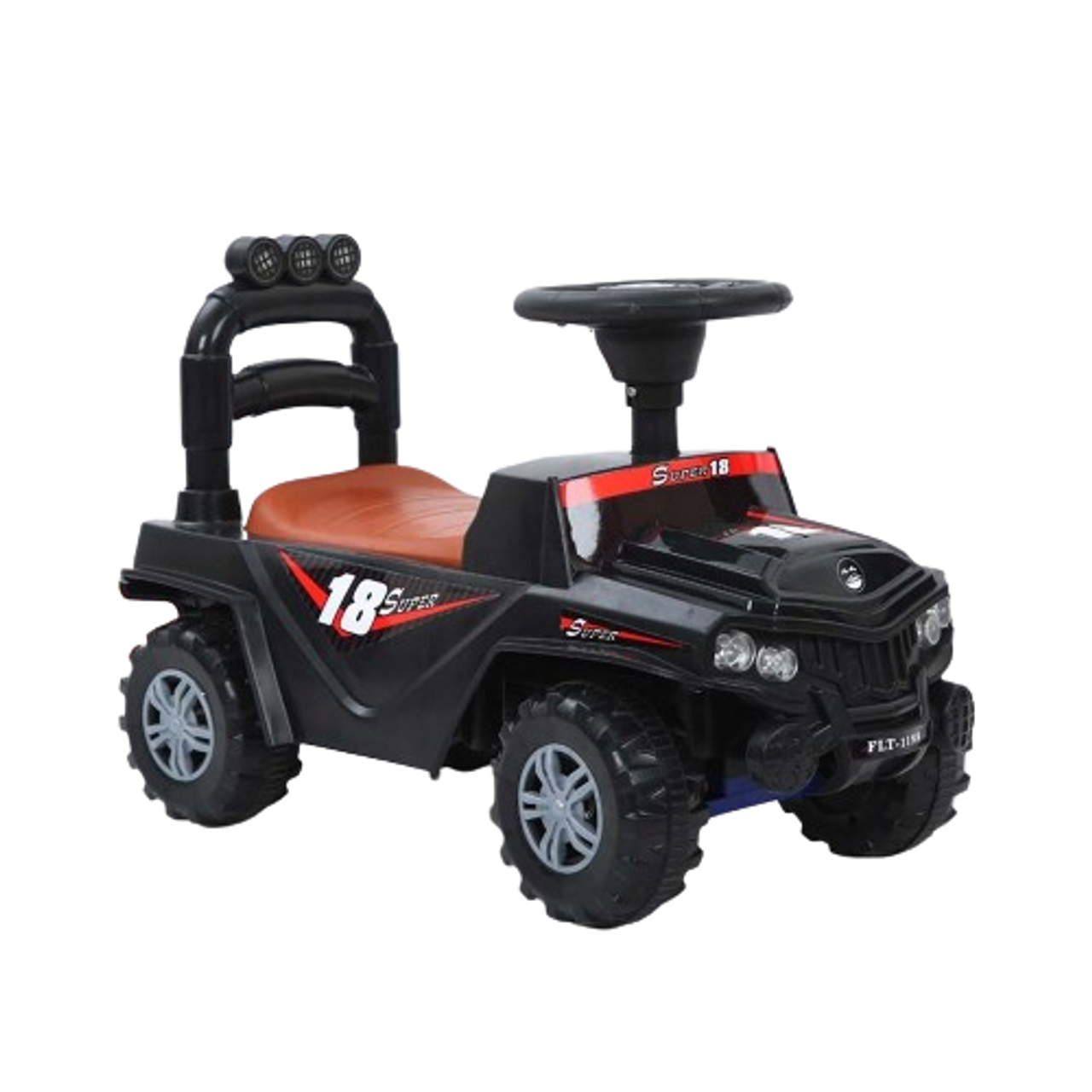 The Kids Ride-On Jeep Style Push Car with Steering Wheel & Backrest – Black | THL-9601/BK is a sleek and durable ride-on toy designed for safe and exciting playtime. With its realistic jeep-style body, easy-to-use steering wheel, and supportive backrest, it offers both comfort and control for young riders. Perfect for indoor and outdoor fun, this black push car helps kids develop balance, coordination, and confidence while having endless adventures.