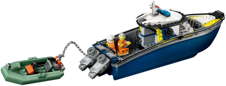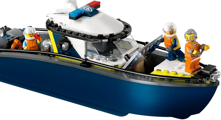 The police boat actually floats on water, adding realistic play value during bath time or pool fun. The set includes two minifigures – a police officer and a crook – along with accessories like a toy fish, banknote element, and handcuffs. With easy-to-follow instructions, it’s perfect for young builders and a great addition to any LEGO City police collection.