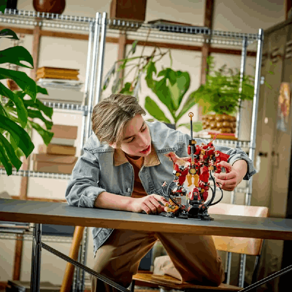 Older NINJAGO® fans aged 14 and up can add to their collection of LEGO® NINJAGO models with this stunning and highly detailed The Fire Knight Mech (71846) building kit. It features a dramatic scene of a cape-wearing, spear-holding mech locked in battle with an ancient monster emerging from the sea, and it will look great on display in a bedroom.
