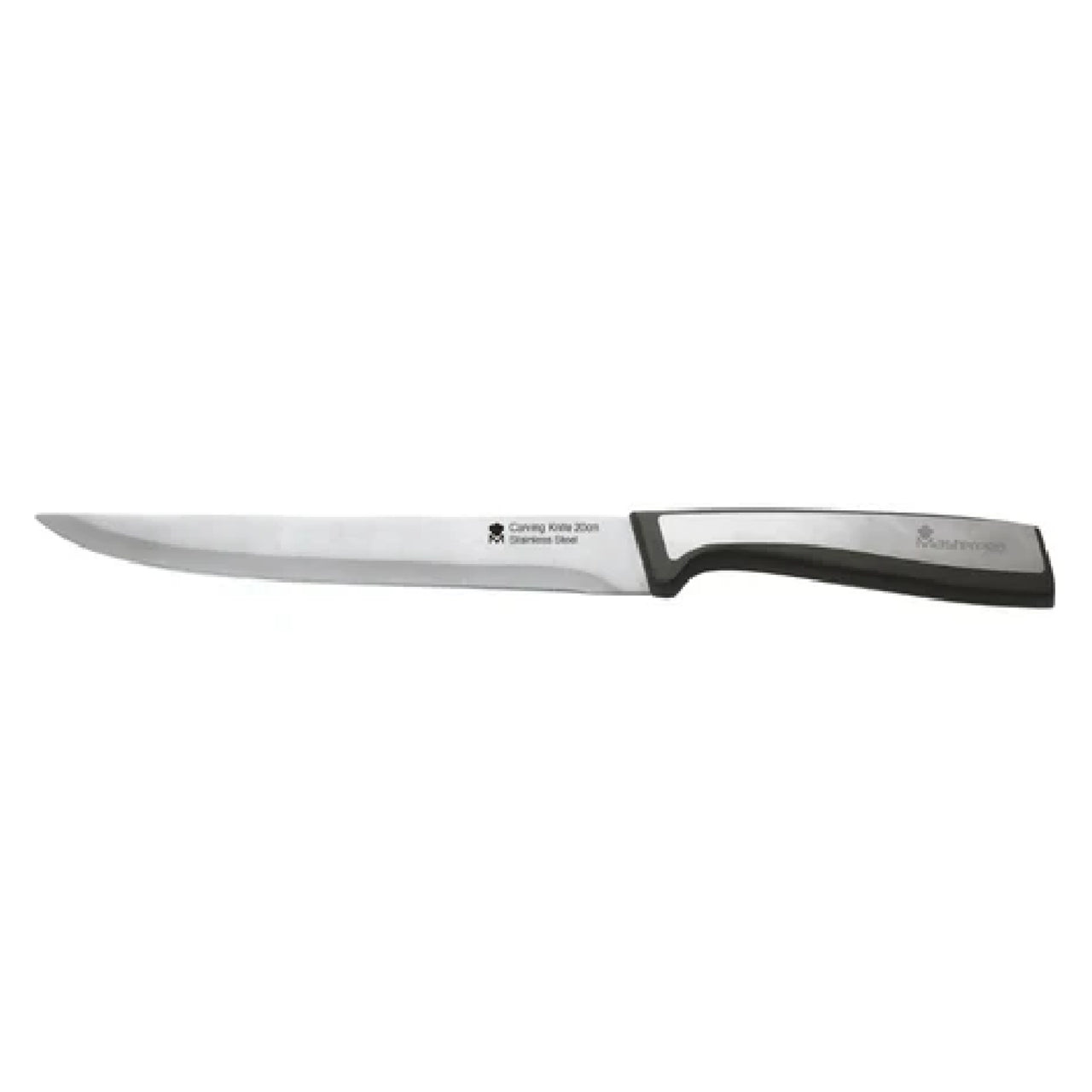 With the Masterpro Sharp Stainless Steel Carving Knife 20cm, effortlessly carve and slice through meats and vegetables. Made from high-quality stainless steel, this knife offers precise cutting while the ergonomic handle provides a comfortable grip. Ideal for professional chefs and home cooks alike.