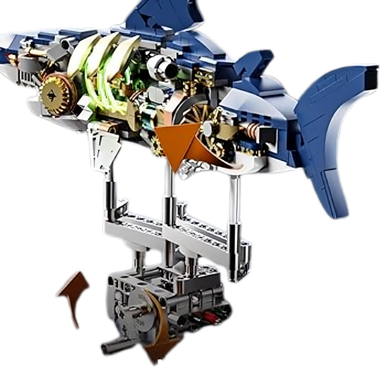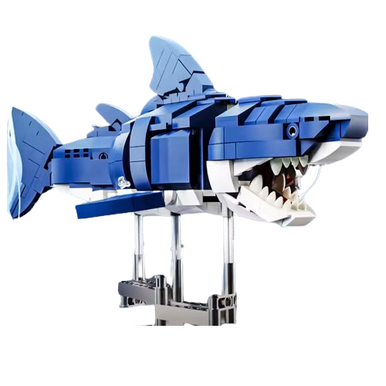 MJI, Creative LEGO-style construction sets, Mecha Shark Building Blocks Set, 687 Pieces Kit with Base | MJI-13054