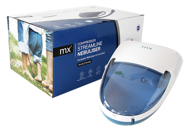 The mx™ Streamline nebuliser is designed to assist in the treatment of asthma, chronic bronchitis, allergies, and other respiratory disorders.