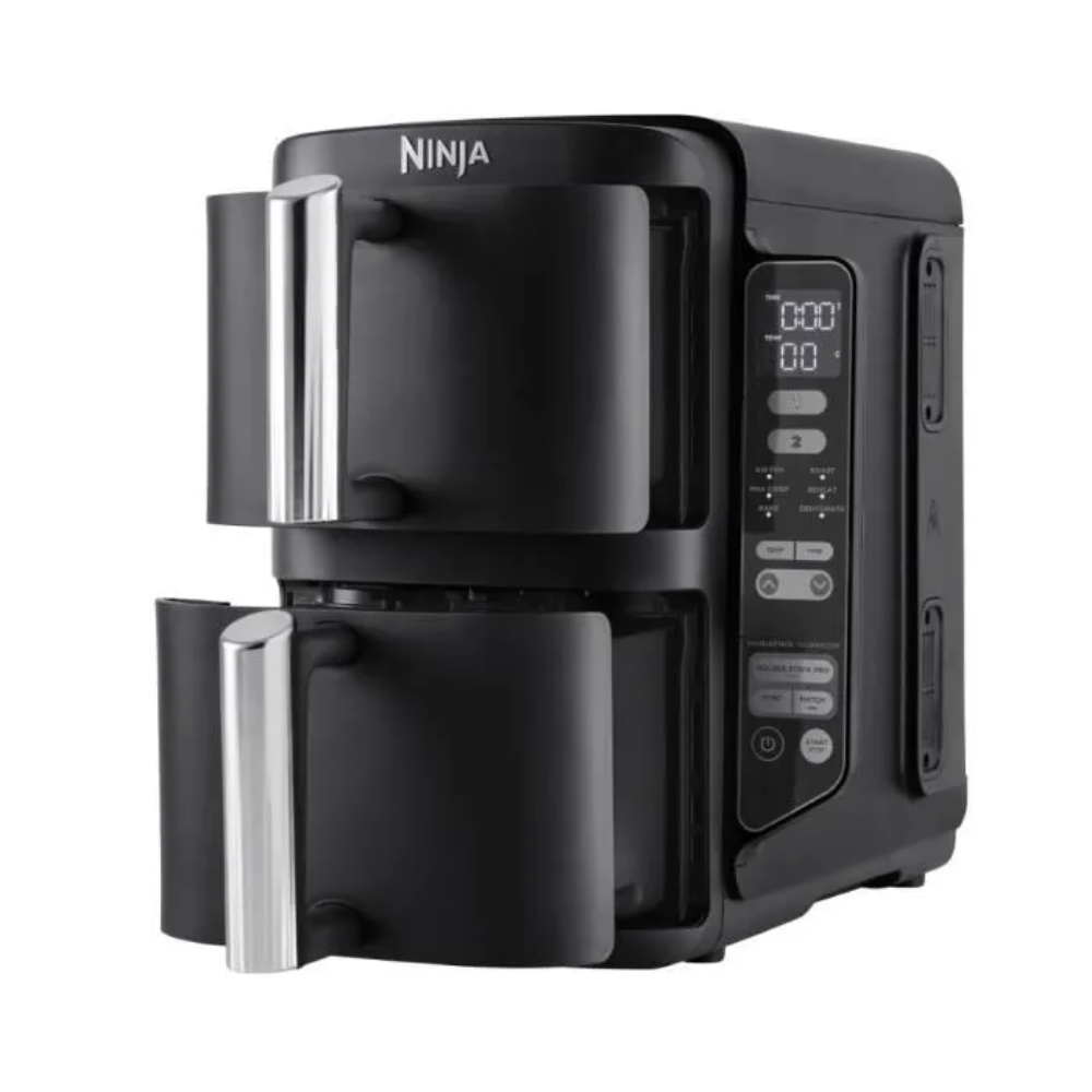 The Ninja SL300EU Double Stack Air Fryer delivers big capacity in a compact footprint. With 7.6 liters of total cooking space and 2470 watts of power, it features a unique vertical dual-zone design, allowing you to cook two different foods at once using independent zones.