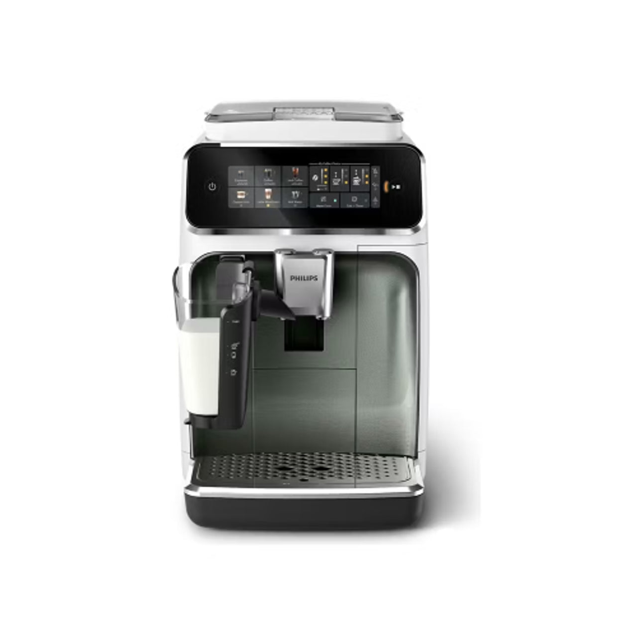 The Philips Series 3300 Fully Automatic Espresso Coffee Machine – White | PHI-EP334350 is a versatile and modern coffee machine designed to deliver barista-quality espresso and milk-based drinks at home. It features a LatteGo milk system, a quiet brewing process, and easy maintenance with the AquaClean filter, making coffee preparation effortless and enjoyable.