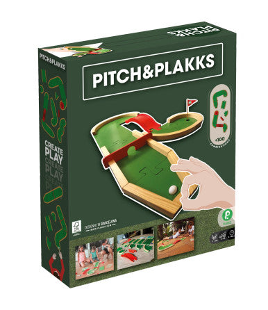 Pitch&Plakks is a fun and exciting game that brings the thrill of miniature golf to your living room. The game features a set of wooden puzzle pieces that can be assembled in countless configurations to create unique and challenging miniature golf courses.