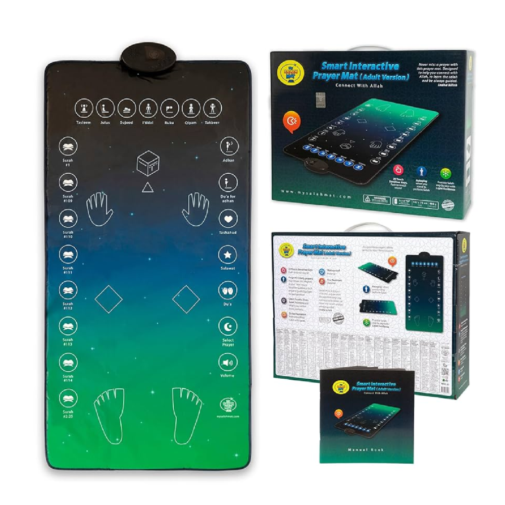 The Porodo Smart Interactive Prayer Mat is an innovative educational tool designed to enhance the prayer experience. Featuring 26 touch-sensitive keys, it guides users through pre-recorded Surahs, Dua, and essential prayer steps with clear instructions. Its Auto-Play function ensures a smooth flow, making it ideal for both learning and practicing Salah.