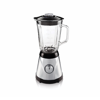 A VERY POWERFUL BLENDER IN ELEGANT BRUSHED STEEL, WITH A MOTOR OF MAX. 800 WATTS, 2 SPEEDS AND A PULSE BUTTON, 1.5 LITRE GLASS JUG WITH MEASUREMENTS,. STEEL CUTTING MECHANISM FOR THE PERFECT PREPARATION OF VARIOUS FRUIT AND VEGETABLE JUICES, COCKTAILS, MILKSHAKES AND SOUP, 800W