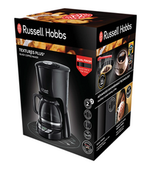 The Russell Hobbs Textures Plus Coffee Maker 22620-56 combines elegant design with practical performance. Featuring a modern black gloss and matte finish, this 1.25 L coffee maker brews up to 10 large or 15 small cups in one go. It includes advanced showerhead technology for improved flavor extraction, ensuring a rich and full-bodied coffee experience.