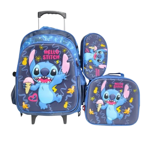 The Stitch Trolley Set 18″ is a bold and colorful 3-piece school and travel combo for kids who love Disney’s Stitch. With playful tropical graphics and vibrant blue tones, this set includes a large wheeled trolley backpack, an insulated lunch bag, and a matching pencil case. Durable, fun, and functional — perfect for school, daycare, or weekend adventures.