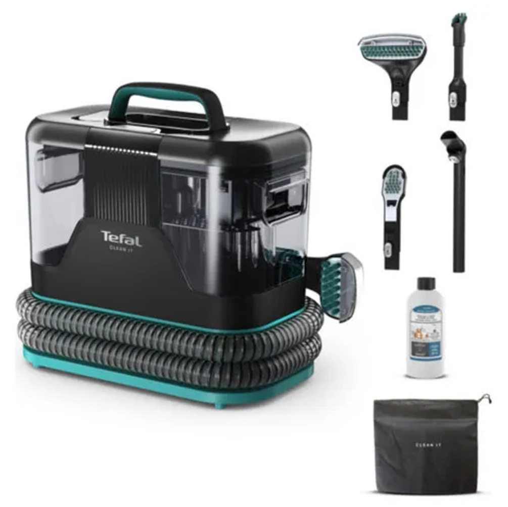 The Tefal Clean It Spot Cleaner IZ5020M0 is a powerful and versatile portable cleaning solution designed for tackling stains and messes on carpets, upholstery, pet areas, and car interiors. With a 750 W motor and a combination of spray, scrub, and suction functions, it delivers deep-cleaning performance while remaining compact and convenient to use.