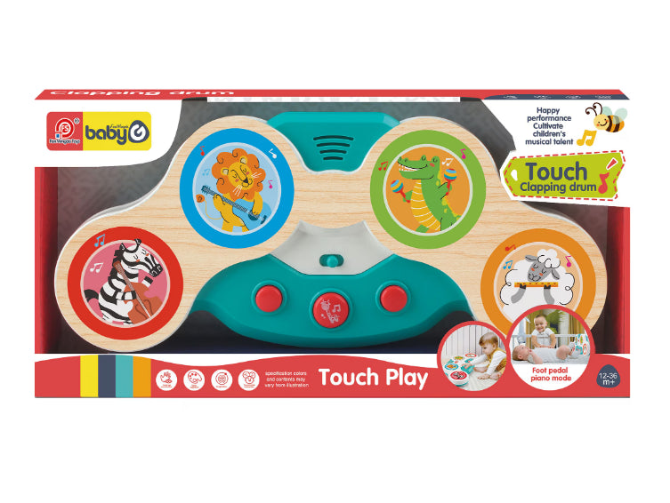 The Touch Play Clapping Drum Musical Toy | 898-6094 is a fun and educational toy designed to encourage sensory development, rhythm learning, and motor coordination. With multiple touch-sensitive drum pads, bright colors, and animal sounds, this interactive drum set helps babies explore music and sound through play. It can be used both on the floor or mounted for foot pedal piano mode, offering diverse ways to play and enjoy.