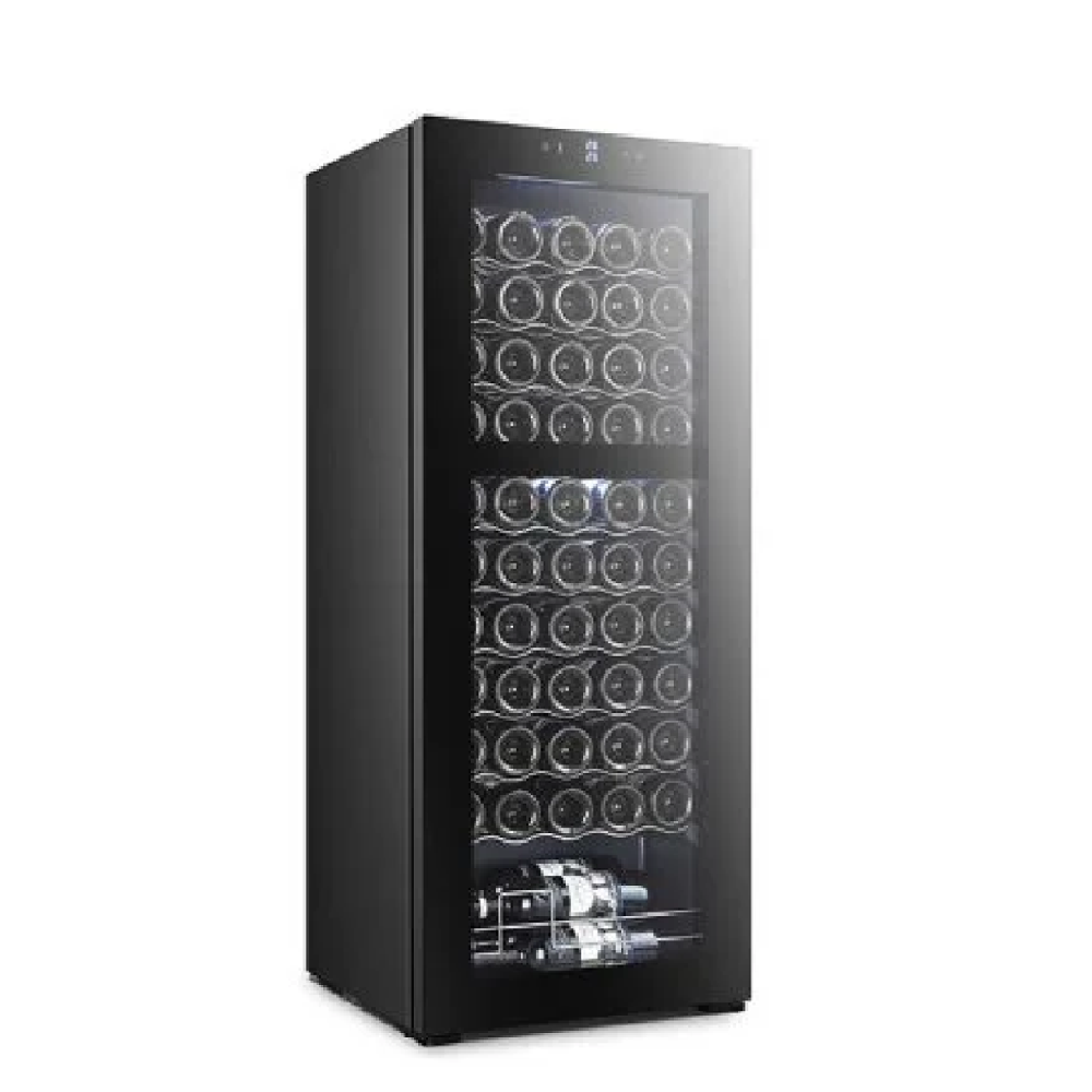The Vivino WIC-D55 is a stylish and functional dual-zone wine cooler designed to store and preserve both red and white wines at their ideal temperatures. It features precise digital temperature control for each zone, allowing optimal conditions for different wine varieties. With a spacious interior that accommodates up to 55 bottles, it combines efficient cooling technology with quiet operation. The elegant design includes wooden shelves, a sleek glass door with UV protection, and soft LED lighting, making it a perfect addition to any modern kitchen, dining area, or wine enthusiast’s collection.