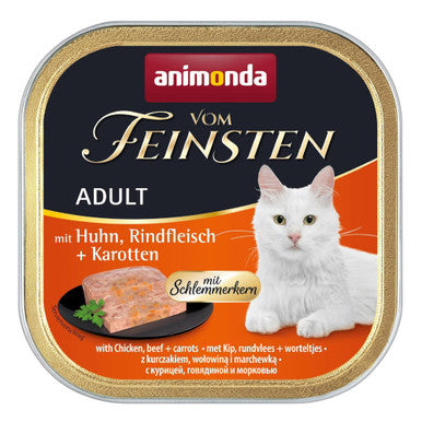 The Animonda Pate Milkies Adult Mit Huhn, Rindfleisch + Karotten | HHN-RDF-KRT is a premium wet cat food formulated for adult cats, featuring a savory blend of chicken, beef, and carrots in a smooth pâté texture. This balanced recipe provides essential nutrients to support daily health while delivering a rich flavor cats love.