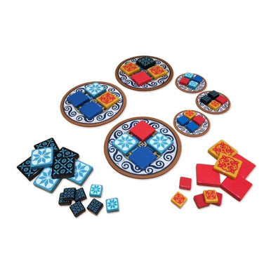 Azul captures the beautiful aesthetics of Moorish art in a contemporary board game. Players compete as artisans decorating the walls of the royal Palace of Dvora. By carefully drafting the correct quantity and style of tiles, the most clever of artisans plan ahead to maximize the beauty of their work (not to mention their scores!) while ensuring they wasted no supplies in the process!