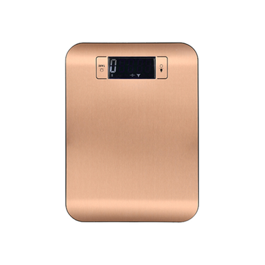 Kitchen Scale Capacity:2G-5000G, Unit: Kg/G/Oz/Lb, Digital Screen, Tare Function, Backlight, Auto Power Off, Show Low Voltage, Copper Color Dims: 16.4X22.2X2 Cm