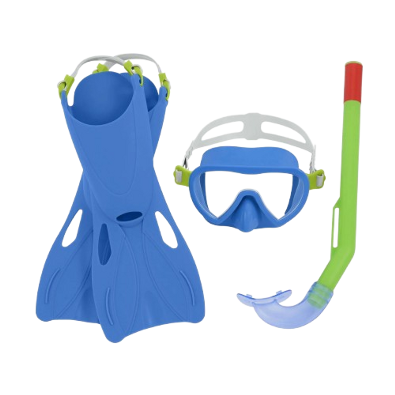 The Bestway Hydro-Pro Dive Set - Blue & Green is a premium-quality snorkeling set perfect for kids and beginners who love underwater exploration. This 3-piece set includes a comfortable mask, a dry-top snorkel, and adjustable fins. Designed with safety and comfort in mind, the tempered glass mask offers a clear panoramic view, while the soft silicone edges and adjustable straps ensure a secure, leak-free fit.