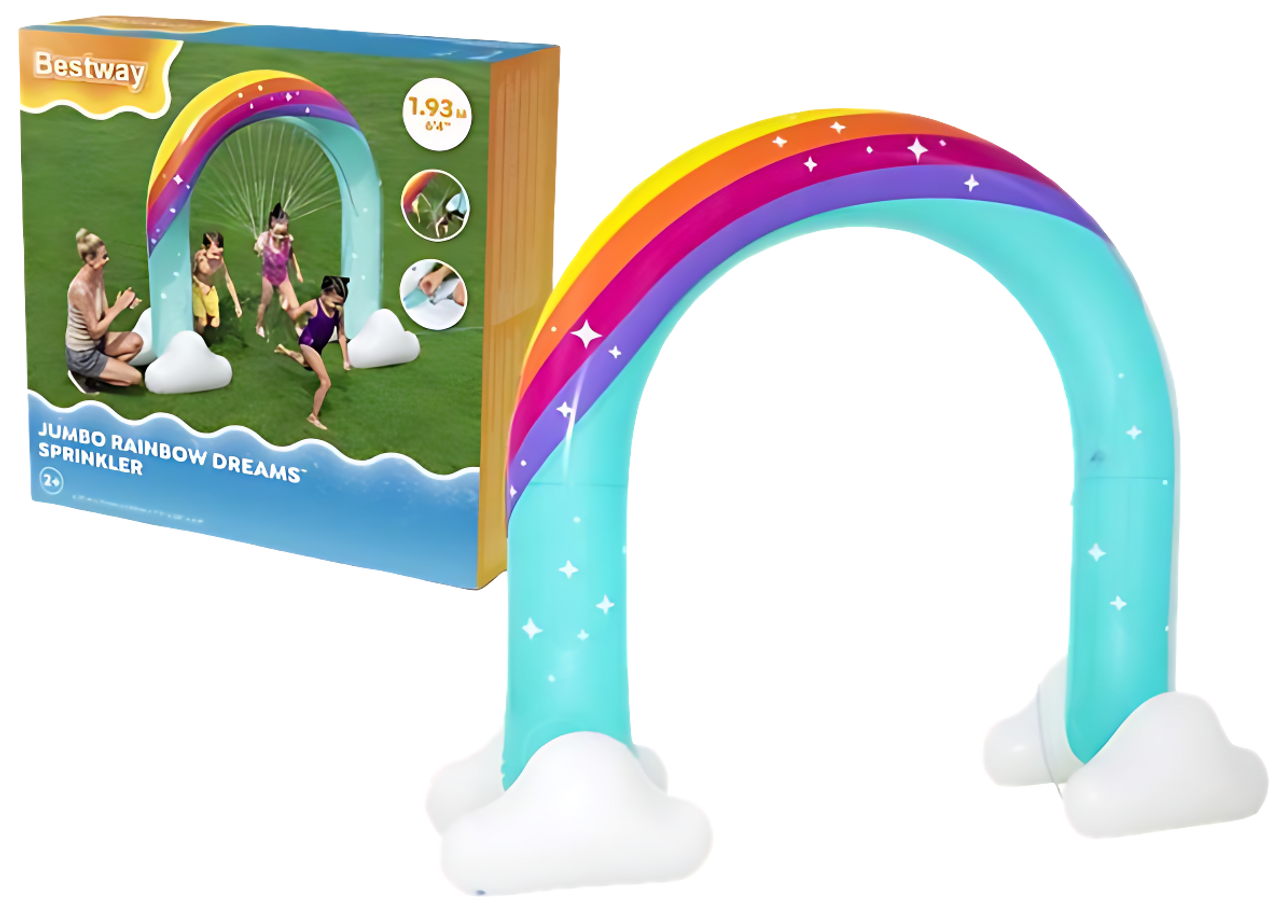 Add some color and fun to summer playtime with the Bestway P-52732 Inflatable Rainbow Arch Sprinkler.