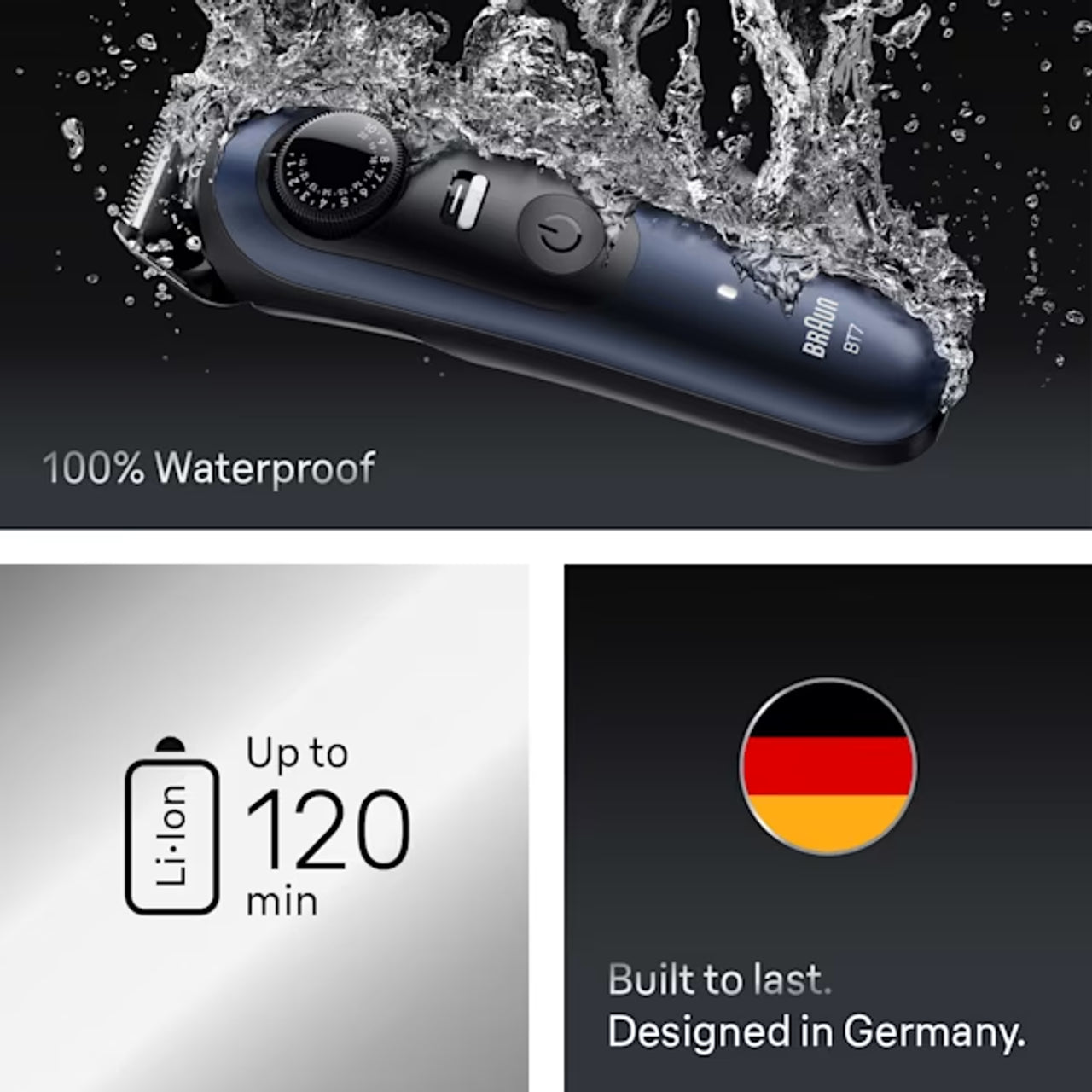 The Braun Beard Trimmer Series 7 (BT7520) is Braun’s advanced beard styling tool, built for maximum precision, performance, and durability. With an upgraded Li-Ion battery, advanced blades, and a precision dial offering multiple length settings, it delivers professional-grade beard grooming at home. Ideal for stubble, short, and long beards, the BT7520 ensures effortless trimming and styling with full control.
