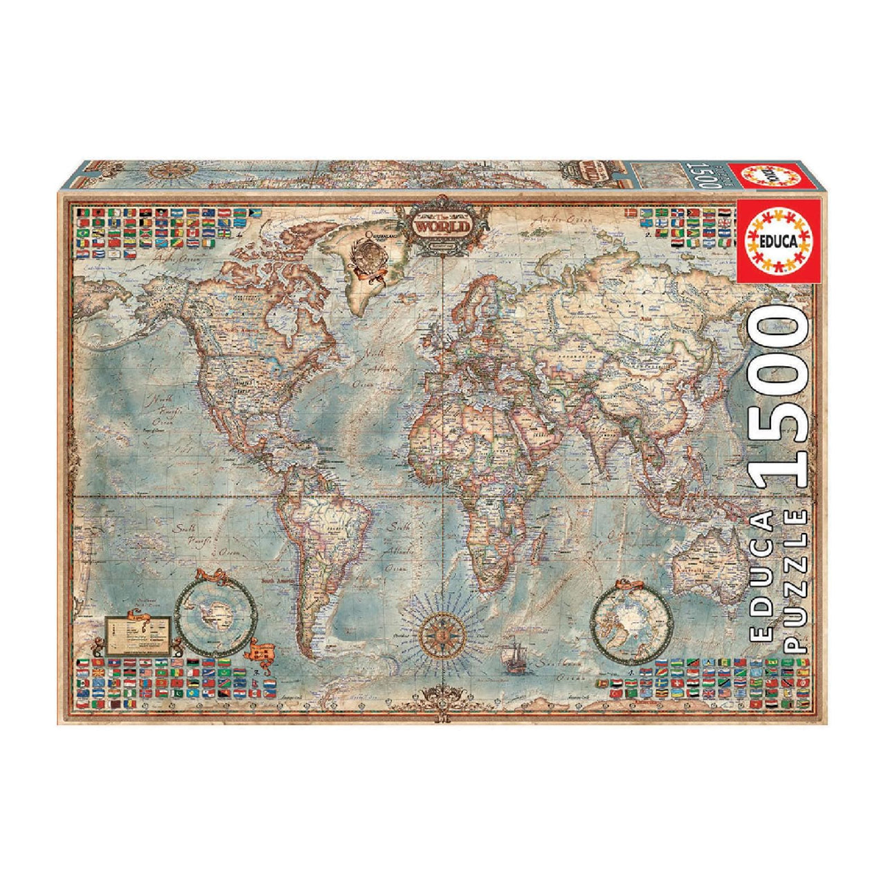 Explore the beauty of the world through this vintage-style puzzle, featuring detailed continents and historic map elements — ideal for geography and puzzle lovers.
