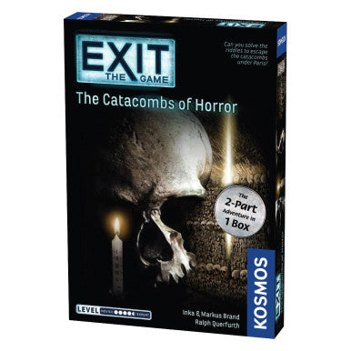Gloomy crypts lie under the city of Paris. The catacombs swallow city light, riddles, and, apparently, also people. After the mysterious disappearance of a friend in the catacombs, you and your team embark on a search party, making your way through the puzzling underground labyrinth. Will you be able to find your friend in time and escape this cavernous world of darkness? In Exit: The Game, players must use their team spirit, creativity, and powers of deduction to crack codes, solve puzzles, collect objects, and earn their freedom bit by bit. The hit escape room concept for home use. You must solve a series of riddles and puzzles to escape from a room. Each correct solution brings you to another riddle. How fast can you escape the room? Materials for 1 time use. Difficulty: Advanced This double-sized EXIT game is presented in two separate parts.
