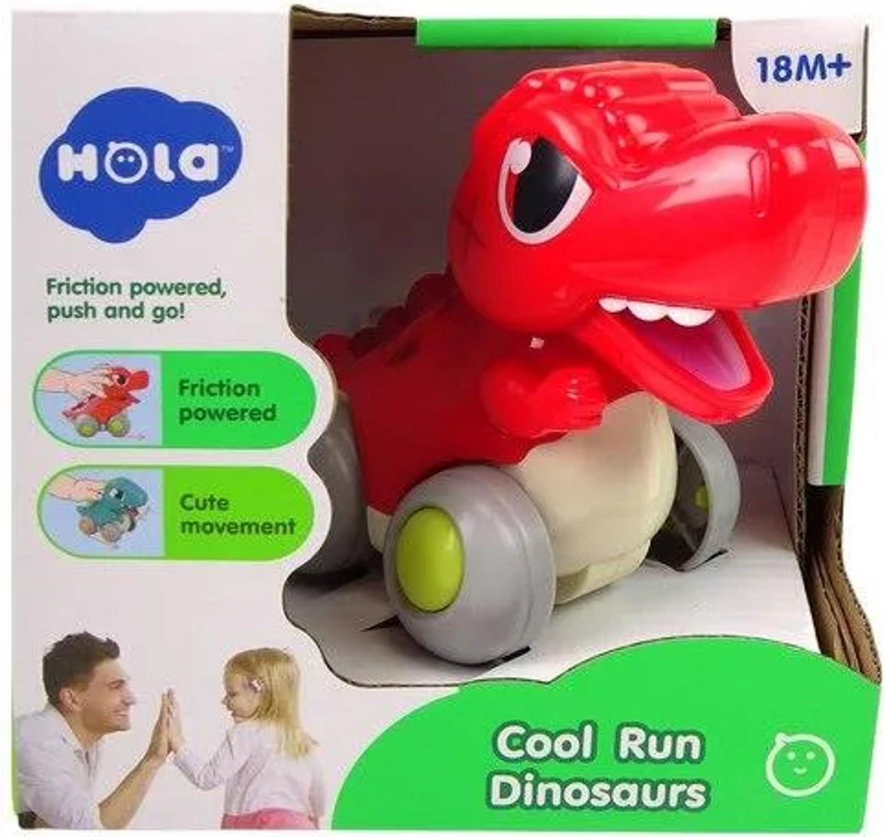 The Hola Cool Run Dinosaurs (MPN: HE7968/A) in red is a fun friction-powered push-and-go toy designed for toddlers 18 months and older. With its cute dinosaur design, this toy engages kids in active play while helping them develop motor skills and hand-eye coordination. Simply push the dinosaur forward, and it zooms ahead with smooth friction-powered movement. Its durable, child-safe materials and bright colors make it an exciting addition to any toddler’s toy collection. Perfect for encouraging imaginative play and early development.