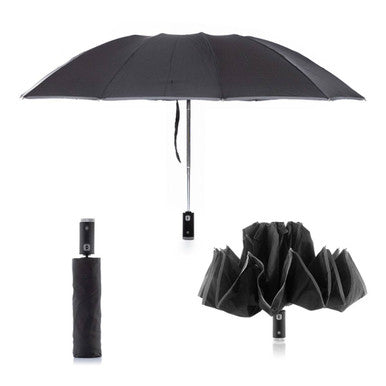 The folding inverted umbrella with led folbrella innovagoods! The folbrella innovagoods reverse close folding umbrella with led is very convenient and practical thanks to its automatic opening and reverse close system. It features an led light on the handle and a reflective stripe all around the edge which is ideal for providing greater visibility and safety at night. When closing this folding umbrella, the wet outside surface remains inside the dry inner surface, which stops the majority of the drips and avoids getting water on clothing, the floor, etc.