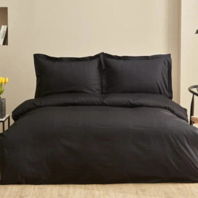 This elegant duvet cover set features a sleek black hue, adding a touch of sophistication to any bedroom. Crafted from 100% cotton satin, it offers a soft and breathable fabric that ensures a comfortable and restful night's sleep.