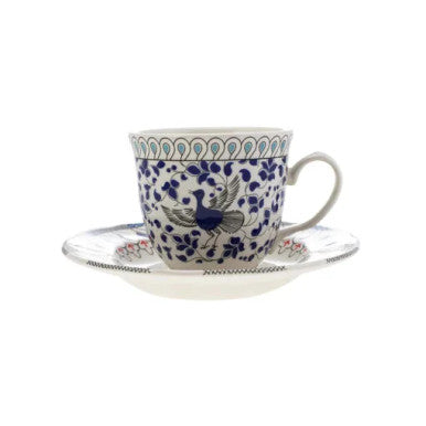 The Karaca Mai Seljuk Series Set of 2 Porcelain Tea Cups (SKU: 153.03.07.9017) is a beautifully crafted tea set that draws inspiration from the rich heritage of the Seljuk Empire. Each cup and saucer in the set features intricate motifs reminiscent of Seljuk-era artistry, combining traditional patterns with a modern aesthetic. Crafted from high-quality porcelain, the set showcases a harmonious blend of deep blue hues and detailed designs, reflecting the elegance and sophistication of the era. The ergonomic design ensures a comfortable grip, enhancing your tea-drinking experience. To preserve the intricate patterns and maintain the set's pristine condition, hand washing is recommended.
